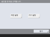 개인화할 수 있는 항목 목록). <디바이스 설정>을 선택하는 경우 설정이 기기의 설정으로 등록됩니다. 관리자 권한이 없는 사용자로 로그인하는 경우 <개인 설정>을 선택한 경우와 마찬가지로 개인화할 수 있는 설정을 변경하면 설정이 개인 설정으로 등록되고 장치 설정으로 등록되지 않습니다.