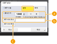 <SNTP 사용>의 <설정>을 누르고 필요한 설정을 수행합니다.