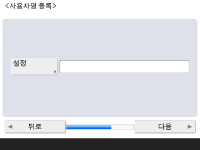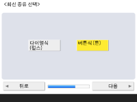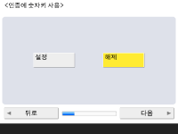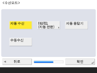 팩스 기능을 사용하기 위한 필수 설정을 지정합니다. ![]() 기기에 팩스 기능이 없는 경우 10단계로 진행합니다. ![]() 팩스 번호를 입력하고 <다음 단계로>를 누릅니다. 팩스 설정에 대한 정보는 팩스 회선 설정을 참조하십시오. ![]() ![]() <설정>을 누르고, 사용자 이름을 입력한 후 <다음 단계로>를 누릅니다. ![]() ![]() 회선 종류를 선택하고 <다음 단계로>를 누릅니다. ![]() ![]() 팩스 기능만 사용하는 경우 <자동 수신>를 누르거나, 전화 또는 헤드셋이 연결된 경우 <FAX/TEL (자동 전환)>를 누르고, <확인>를 누릅니다. | |
