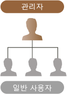 기기를 관리하기 위해서는 관리자가 있고 일반 사용자가 관리자의 관리하에 기기를 작동시키는 시스템을 구축할 것을 권장합니다. 관리자는 기기 사용 규칙을 정하고 네트워크 및 보안과 같은 중요한 설정을 합니다. 관리자는 필요한 경우 각 사용자를 위한 액세스를 설정합니다.