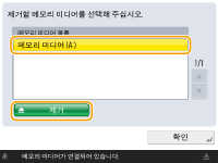 2 | 분리하고자 하는 메모리 미디어를 선택하고 <제거>를 누릅니다. ![]() |