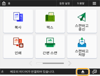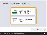 <메모리 미디어 연결시의 조작화면 표시>를 <설정>으로 설정한 경우 메모리 미디어를 삽입하면 사용 가능한 기능의 단축키가 표시됩니다. <메모리 미디어 연결시의 조작화면 표시> ![]() 기기가 슬립 모드인 경우 단축키가 표시되지 않을 수 있기 때문에 기기가 슬립 모드에서 복구된 후 메모리 미디어를 삽입합니다. |