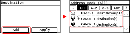 If the [Address Book PIN] screen is displayed, enter the PIN, and press [Apply].