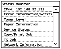 on the control panel. Use this screen to check the information of the machine, usage and logs, network settings, and error information. [Status Monitor] Screen