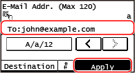 Enter the user name and password to be used for SMTP authentication, and then press [Apply].