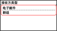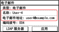 对于接收方信息,按 [电子邮件地址],输入该信息,然后按 [应用]。