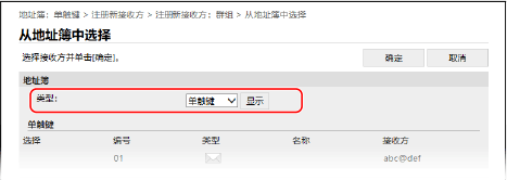 在 [类型] 中,选择 [单触键] 或 [编码拨号],然后单击 [显示] 以更改地址簿显示。