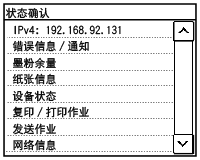 后将显示此画面。使用此画面可查看本机信息、使用情况和日志、网络设置和错误信息。