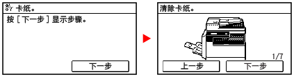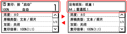 出现错误、本机缺纸或墨粉盒缺墨时,画面上将显示消息。