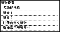 按下 [主页] 画面上的 [纸张设置] 后将显示此画面。使用此画面可配置本机的各种设置。