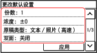 可以使用操作面板更改扫描、复印和其他调用功能的默认设置。