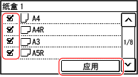 清除要隐藏的纸张尺寸的复选框,然后按 [应用]。