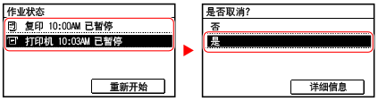 如果显示作业列表画面,请选择要取消的作业,然后按 [是]。