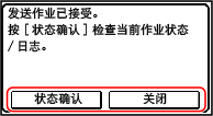 检查扫描数据的发送和保存状态与日志按 [关闭] 显示扫描画面。