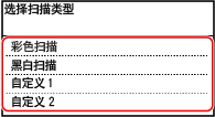[主页] 屏幕将显示扫描类型选择屏幕。