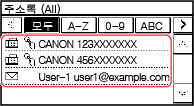 조작 패널의 [홈] 화면에서 [주소록]을 누릅니다. [홈] 화면