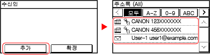 조작 패널의 [홈] 화면에서 [주소록]을 누릅니다.