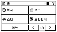 ]을 누르면 표시되는 기능 또는 설정 버튼이 변경됩니다. 이러한 버튼을 눌러 해당 기능이나 설정을 시작할 수 있습니다. 버튼 순서를 변경할 수도 있습니다.