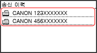 송신 작업 로그를 호출하여 이전에 사용한 대상을 지정할 수 있습니다. 대상을 사용할 때 사용된 스캔 설정도 불러옵니다.
