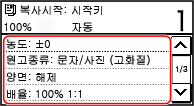 복사 화면에서 [원고 종류]를 누릅니다.
