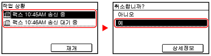 작업 목록 화면이 표시되면 취소할 작업을 선택하고 [예]를 누릅니다.