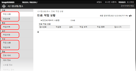 관리자 모드 또는 부서 ID를 사용하여 리모트 UI에 로그인하면 모든 인쇄 작업의 상태가 표시됩니다.