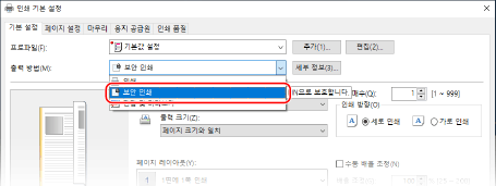 [인쇄 기본 설정] 화면이 다시 나타납니다.