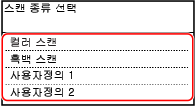 스캔 설정을 선택하고 조작 패널에서 을 누릅니다.