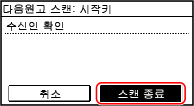 원고를 원고대 위에 놓고 스캔하는 경우, 추가 원고를 스캔하기 위한 화면이 표시됩니다.
