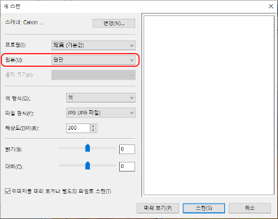 스캔한 데이터의 미리 보기를 확인하려면 [미리 보기]를 클릭합니다.