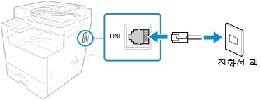 제공된 전화 코드를 기기의 전화선 잭(LINE)과 벽의 전화선 커넥터에 연결합니다.