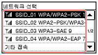 연결하려는 무선 LAN 라우터의 정보(SSID 또는 네트워크 키)를 준비하고 가까운 곳에 보관합니다. 연결에 필요한 무선 LAN 라우터 정보 WPA-EAP 또는 WPA2-EAP를 보안 표준으로 지원하는 무선 LAN 라우터에 연결하는 경우 IEEE 802.1X를 설정합니다. IEEE 802.1X 사용 |