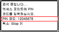이 화면이 표시되면 10분 이내에 WPS PIN 코드를 무선 LAN 라우터에 등록해야 합니다.