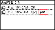 인쇄를 수행할 수 없거나, 스캔한 데이터 또는 팩스를 전송하거나 수신할 수 없거나, 다른 오류가 발생하는 경우, 보고서나 작업 로그에 오류 코드("#"로 시작하는 세 자리 숫자)가 표시됩니다.
