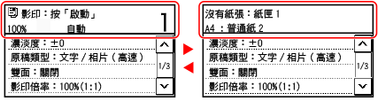 發生錯誤而且本機的紙張或碳粉匣中的碳粉用完時,畫面會顯示訊息。