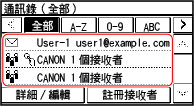 從 [首頁] 畫面或是掃描畫面叫用通訊錄來指定目的地時,請使用目的地清單。
