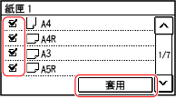 清除要隱藏的紙張尺寸的核取方塊,然後按下 [套用]。