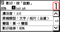 * 您使用「護照影印」進行影印時,影印倍率會根據影印所用的紙張尺寸以及要合併的護照數量自動設定。您也可以按下 [自訂倍率] 手動變更影印倍率。