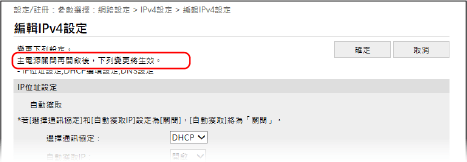 [設定/註冊] 按一下此項可顯示 [設定/註冊] 畫面。 如果您以管理員模式登入,可以變更任何設定並執行儲存和匯入資料等操作。 可在 [設定/註冊] 畫面中設定的項目與控制面板中的項目幾乎相同,不過某些項目只能藉由控制面板或遠端使用者介面進行設定。 設定功能表項目視項目而定,您可能需要重新啟動本機才能應用設定。如果需要重新啟動,畫面頂端會出現訊息。 |