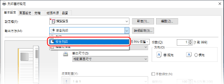 使用安全列印,您可以為電腦上的文件設定 PIN 碼並將該文件傳送到本機進行列印。在本機上輸入 PIN 後即可執行列印。