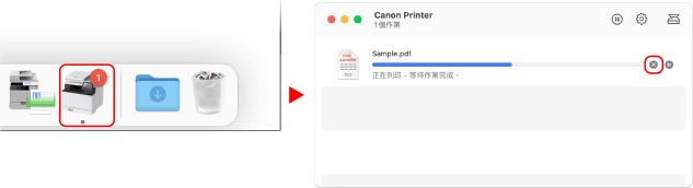 按一下 Dock 中的印表機圖示,選擇要取消的文件,然後按一下 [