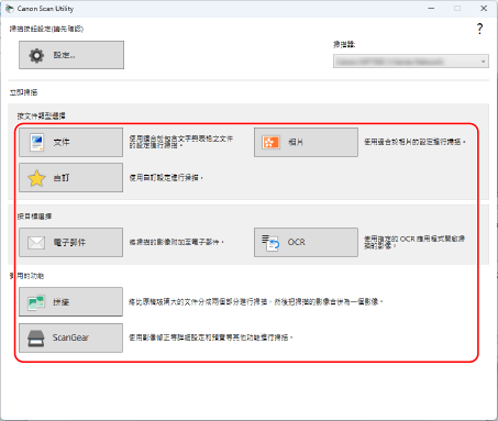 如需更進階的掃描設定,請選擇 ScanGear MF。如需詳細資訊,請按一下 ScanGear MF 上的 [