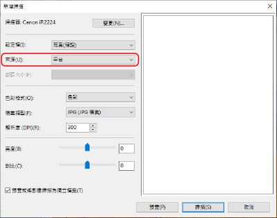 在 [來源] 中,選擇放置原稿的位置。