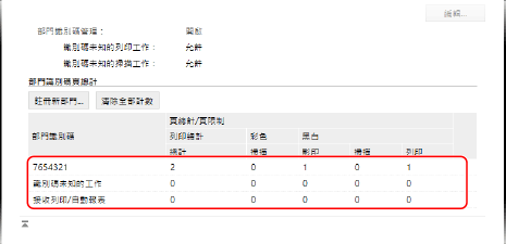 啟用部門 ID 管理後,您可以檢視每個部門 ID 的列印和影印頁數。