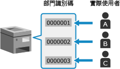使用部門 ID 管理時,建議建立管理員帳號和系統,由特定使用者進行管理和操作。