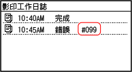 如果無法執行列印,或者無法傳送或接收掃描資料,或者發生其他錯誤,報告或工作記錄中會顯示錯誤代碼(以「#」開頭的三位數)。
