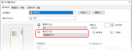 將印表機驅動程式的 [輸出尺寸] 調整成要列印紙張的尺寸。