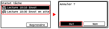 Si l'écran de la liste des tâches s'affiche, sélectionnez la tâche à annuler, puis appuyez sur [Oui].