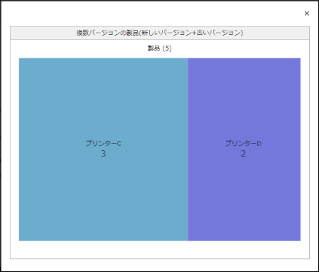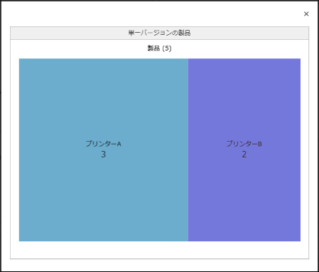 プリンターAはすべて同じバージョン、プリンターBもすべて同じバージョンなので、プリンターAとプリンターBの合計5台が緑色で示されます。