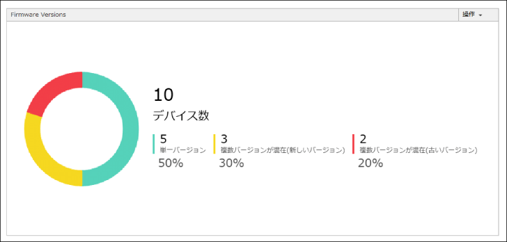単一バージョン | 単一のファームウェアバージョンで統一されている製品の台数は緑色で示されます。 数値は、該当する各製品の台数の合計です。 | |